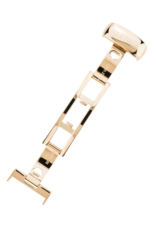 Originální spona Certina C640016326 na řemínky Certina . Vyrobeno z nejkvalitnější nerezové oceli, PVD pozlaceno růžovým zlatem, zapínání na originální řemínek Certina šíře 16 mm u přezky nebo v místě jeho montáže. Velmi příjemné na nošení, bezpečně odnímatelné stažením.