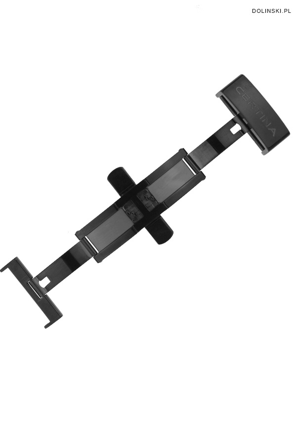 Originální zapínání Certina C640018494 pro pásky Certina. Vyrobeno z nejkvalitnější nerezové oceli, potažené černým PVD povlakem, zapínání na originální 18 mm široký řemínek Certina u přezky nebo jejího montážního bodu. Velmi pohodlné na nošení, bezpečné, odepínatelné na knoflíky.