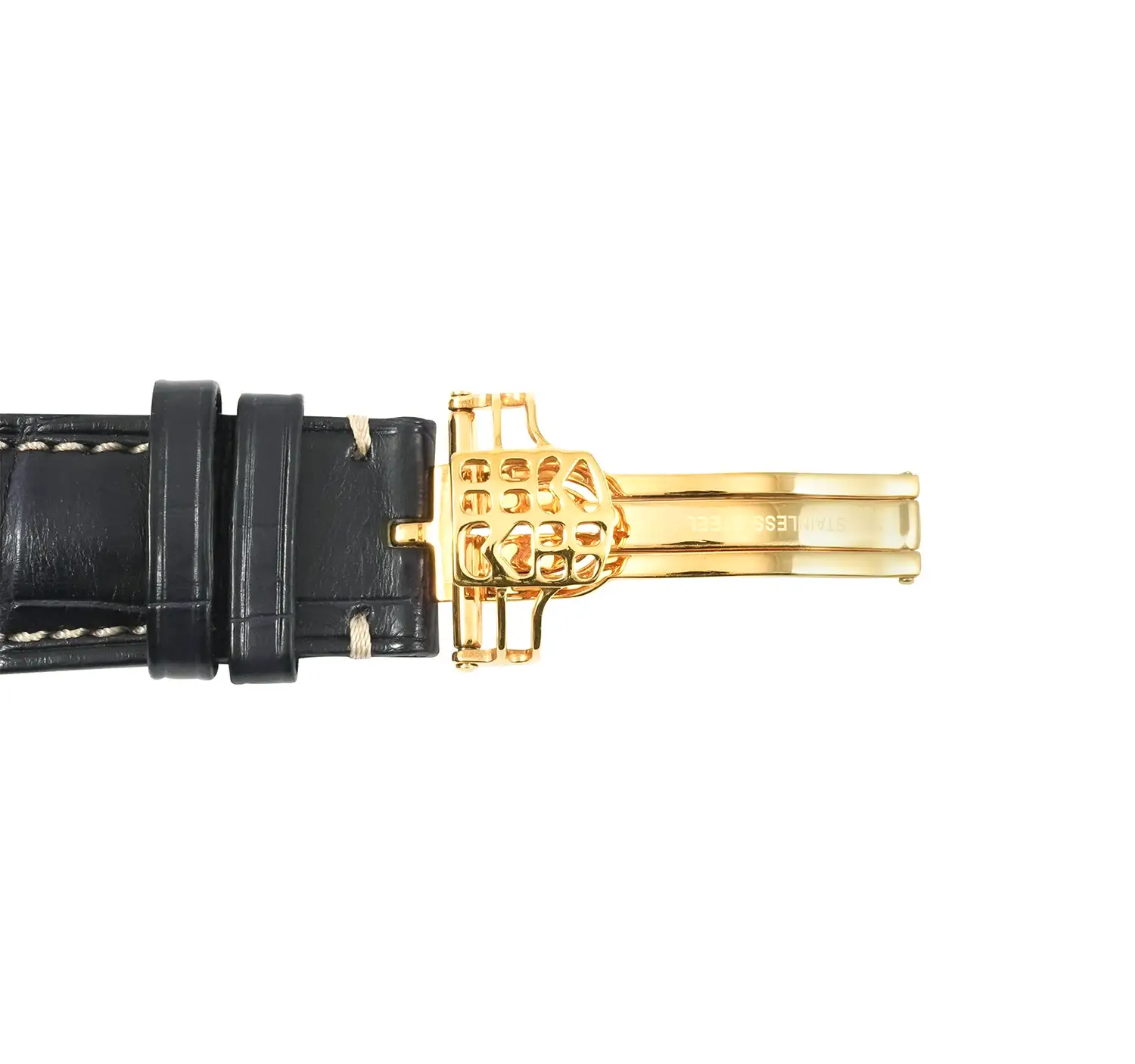 Originální spona Frederique Constant FC-CLCS18/GP je elegantní šperkový prvek, který spojuje vytříbenou estetiku s praktickou funkčností. Vyrobena z vysoce kvalitní ušlechtilé oceli ve zlaté barvě, vyniká ažurovou konstrukcí s charakteristickým motivem značky, což jí dodává lehkost a jedinečný charakter. Lesklá povrchová úprava podtrhuje luxusní styl a dokonale ladí s klasickými a elegantními hodinkami.