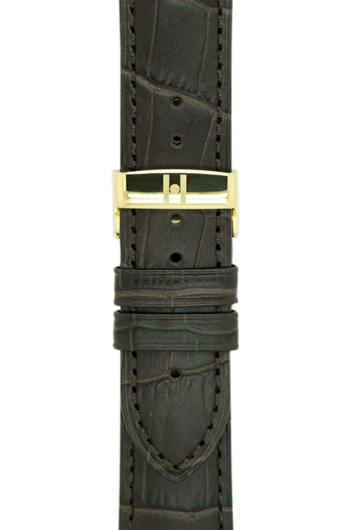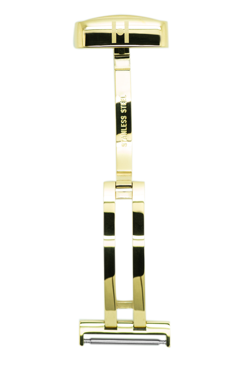Opasková spona Hirsch z nerezové oceli v odstínu žlutého zlata, zapínání na druky a patentky. Velmi pohodlné na nošení, díky tvarovanému tvaru nevyčnívá z ruky. S výškou 4,6 mm , kam se vkládá perforovaná část popruhu, je ideální pro sportovní silné popruhy. Spona je k dispozici ve velikostech 18, 20 a 22 mm - to je šířka, kam se montuje spona nebo přezka na opasek. Před zadáním objednávky vyberte vhodnou šířku spojovacího materiálu.