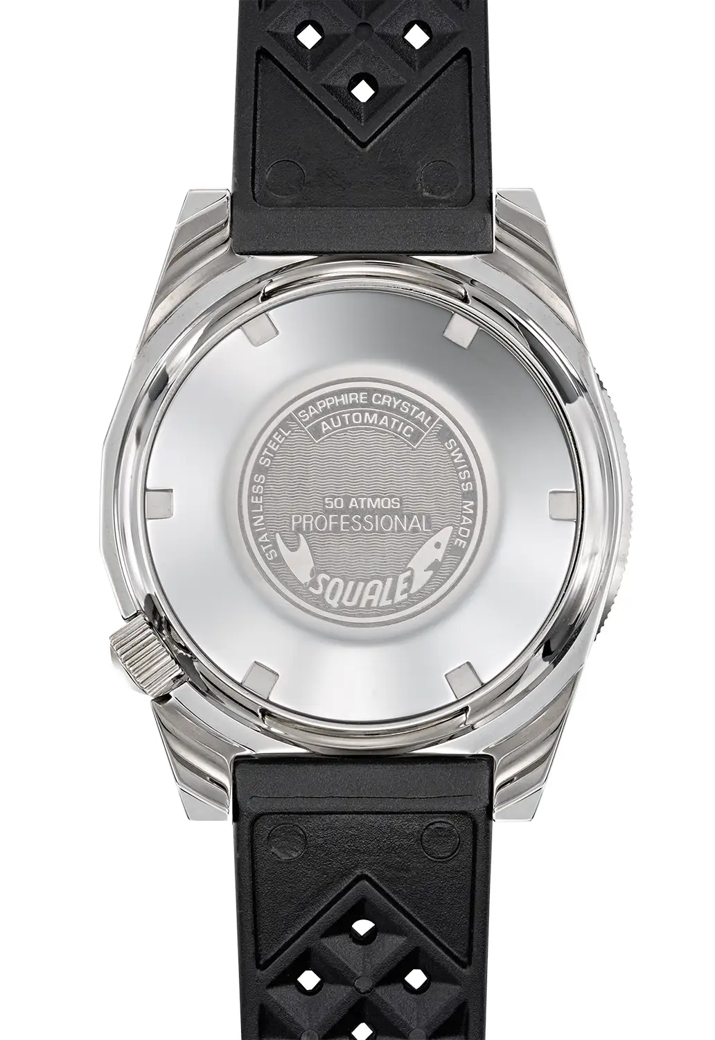 Model vychází z klasického pouzdra Squale 1521 o průměru 42 mm, které díky kompaktní konstrukci a tloušťce 12,5 mm skvěle sedí na zápěstí. Vodotěsnost 500 metrů (50 ATM), šroubovací korunka na pozici 4. hodiny a plné dýnko činí z hodinek nástroj připravený na průzkum hlubin. Pouzdro je vyrobeno ze saténově kartáčované nerezové oceli 316L, odolné vůči korozi a poškrábání.