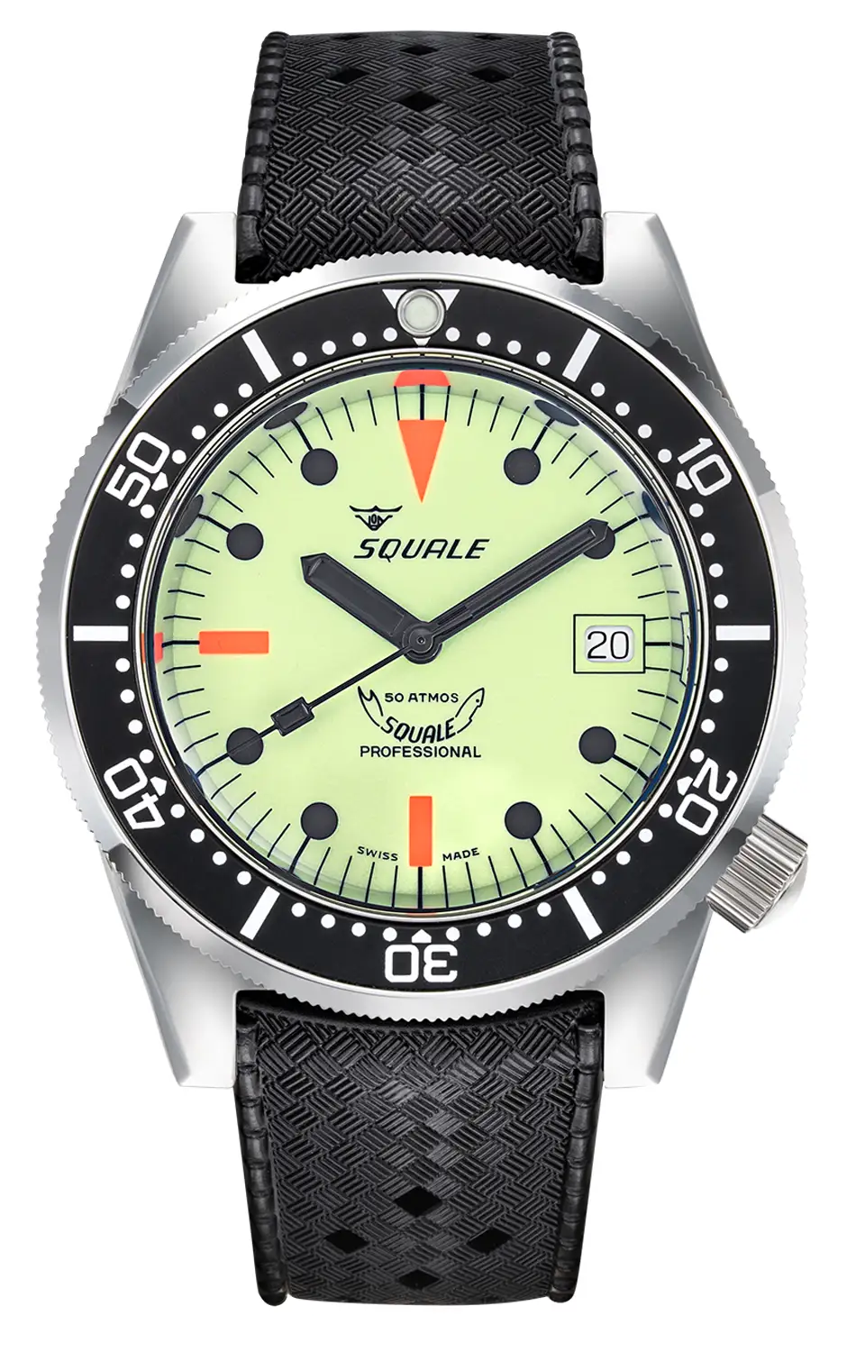 Squale 1521 Full Luminous na řemínku Tropic nejsou jen mimořádně čitelné potápěčské hodinky, ale i projev osobitosti – určené pro nadšence, kteří se nebojí vyniknout pod vodou i na souši.