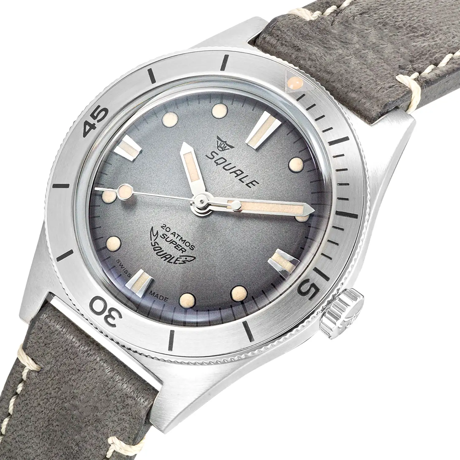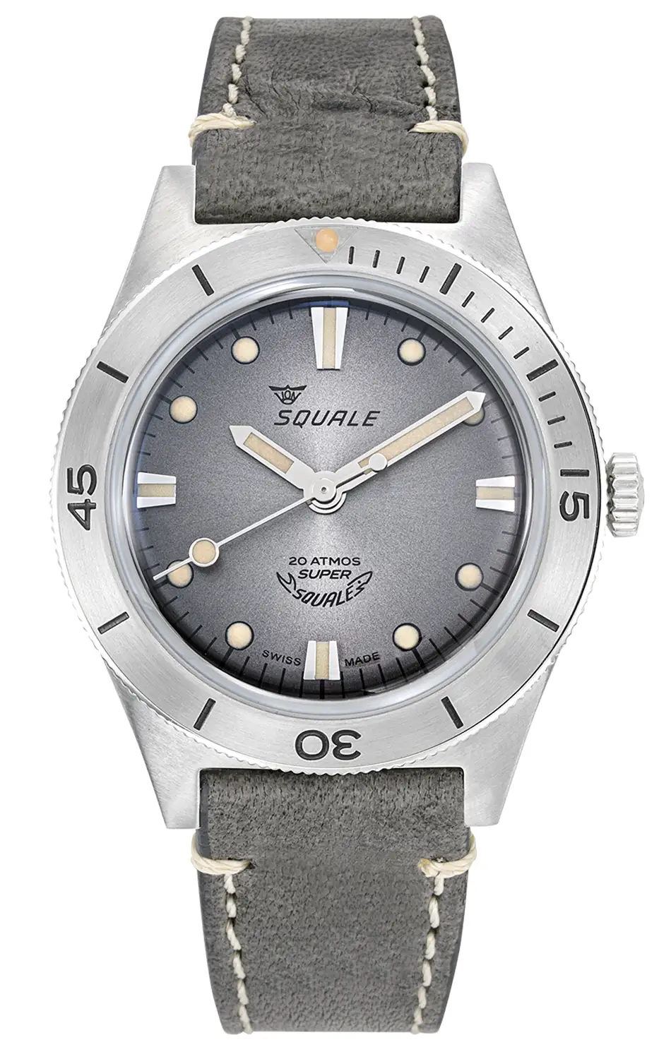 Squale Super Squale SUPERSSG.PG jsou hodinky, které harmonicky spojují ducha klasických potápěčských modelů ze 60. let s moderním zpracováním a vintage detaily. Tato verze zaujme decentní šedí – jak na matném číselníku, tak na precizně zpracovaném koženém řemínku Made in Italy s bílým kontrastním prošitím. Výsledek? Časomíra s výjimečnou rovnováhou mezi elegancí a sportovní funkčností.
