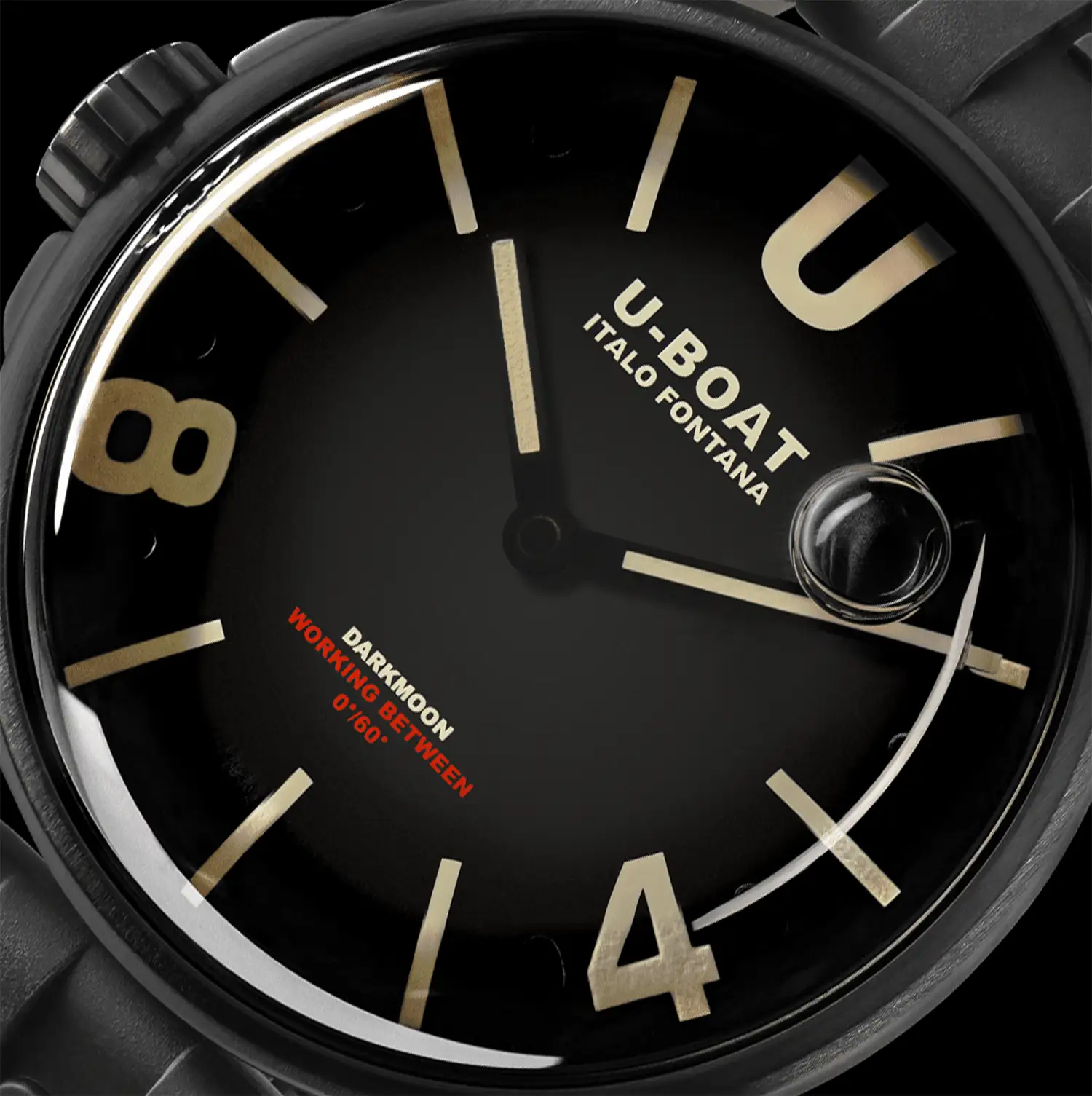 Kolekce hodinek U-Boat Darkmoon s bublinou na ciferníku, jak prozrazuje její tvůrce, se vynořila přímo z Měsíce, přesněji řečeno z jeho temnější strany. V návaznosti na myšlenku poprvé prozkoumanou s Capsoil se Darkmoon ponoří ještě hlouběji do inovativního konceptu „imerzního oleje“. Celá elektromechanika hodinek se švýcarským quartz strojkem Ronda je nyní ponořena do olejové lázně. Olejovitá kapalina zcela obklopuje ciferník s povrchovou úpravou podrážkou, vytváří iluzi neexistujícího skla a zintenzivňuje modrý odstín na maximum, stejně jako činí časovou stupnici čitelnou jako žádné jiné hodinky jiného původu. A co víc, kompenzační vzduchová bublina se nepřetržitě a volně pohybuje pod konvexním safírovým sklíčkem v rytmu pohybu zápěstí, což dále zvyšuje atraktivní vzhled hodinek a dokazuje ambiciózní, kreativní a nezávislý přístup Itala Fontany k designu.