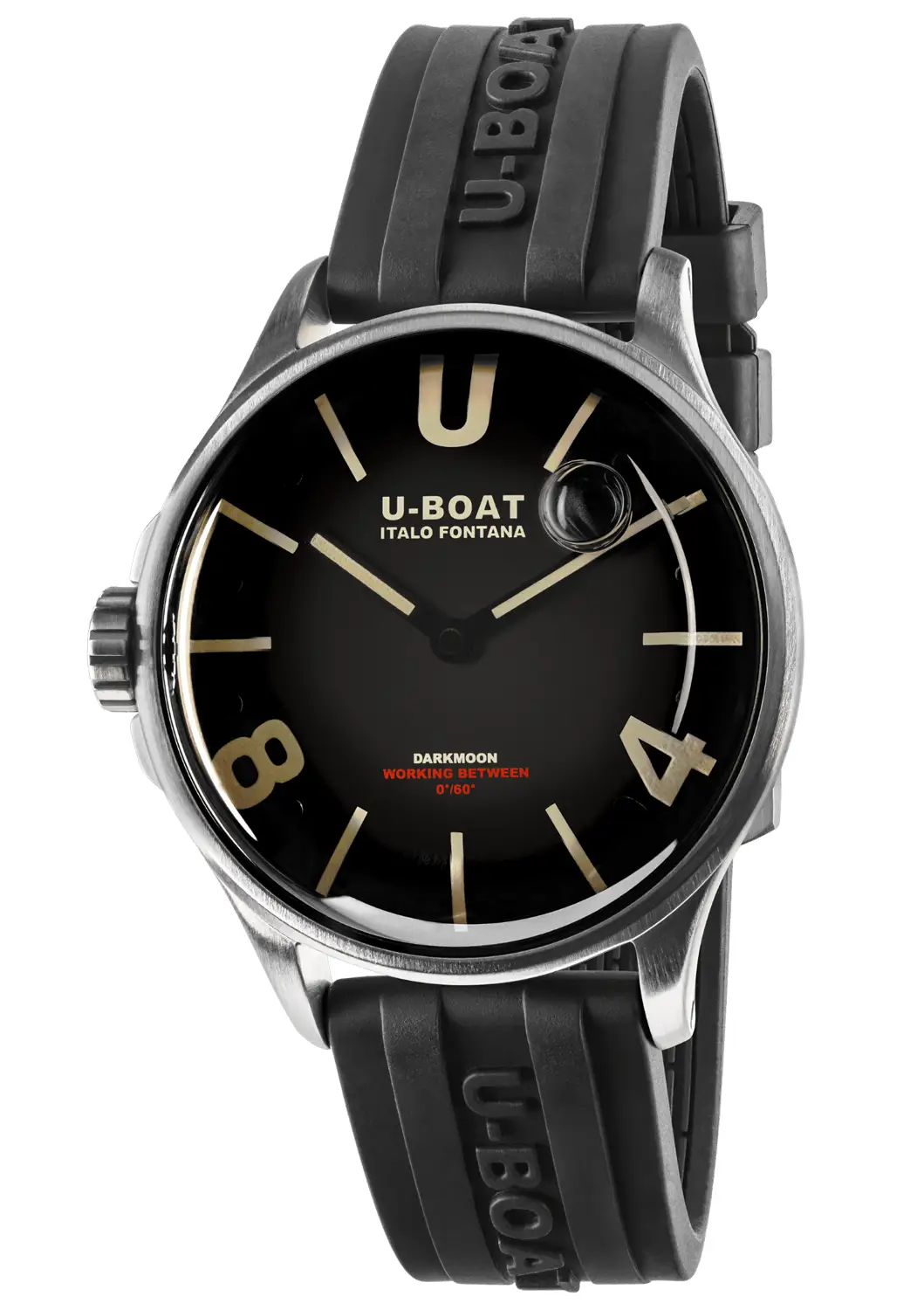 Kolekce hodinek U-Boat Darkmoon s bublinou na ciferníku, jak prozrazuje její tvůrce, se vynořila přímo z Měsíce, přesněji řečeno z jeho temnější strany. V návaznosti na myšlenku poprvé prozkoumanou s Capsoil se Darkmoon ponoří ještě hlouběji do inovativního konceptu „imerzního oleje“. Celá elektromechanika hodinek se švýcarským quartz strojkem Ronda je nyní ponořena do olejové lázně. Olejovitá kapalina zcela obklopuje ciferník s povrchovou úpravou podrážkou, vytváří iluzi neexistujícího skla a zesiluje černý odstín na maximum, stejně jako činí časovou stupnici čitelnou jako u žádných jiných hodinek jiného původu. A co víc, kompenzační vzduchová bublina se nepřetržitě a volně pohybuje pod konvexním safírovým sklíčkem v rytmu pohybu zápěstí, což dále zvyšuje atraktivní vzhled hodinek a dokazuje ambiciózní, kreativní a nezávislý přístup Itala Fontany k designu.